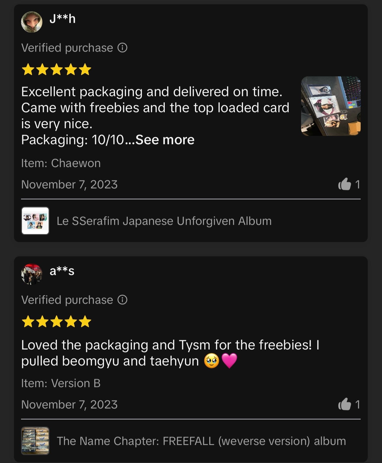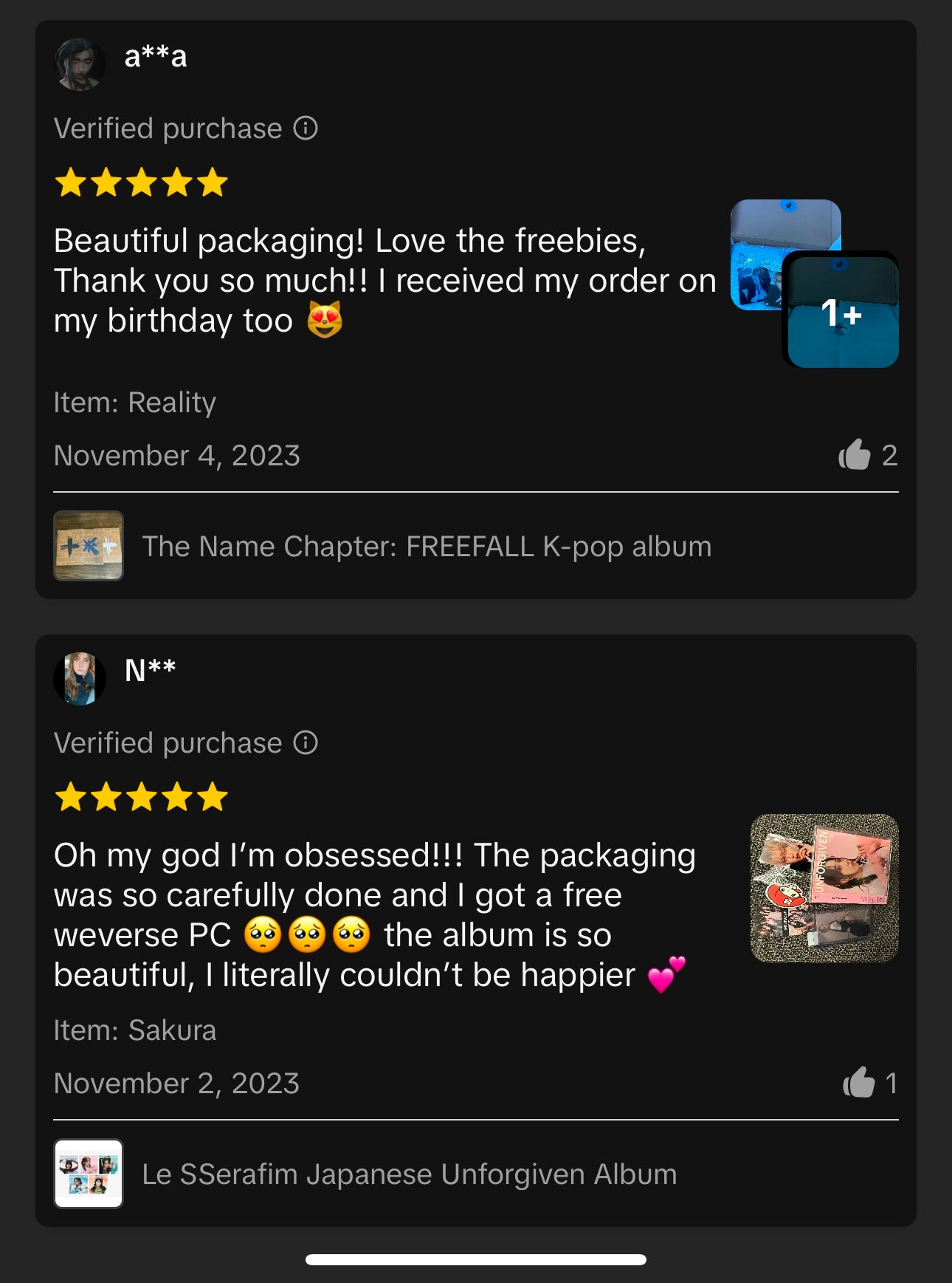 A few reviews out of the 601 reviews we recieved from tiktok shop.